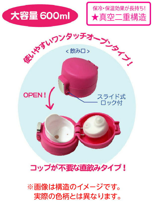 真空二重構造で保冷・保温効果が長持ち!スリムサイズでかばんにもスッと入る!使いやすいワンタッチオープンの直飲みタイプです。